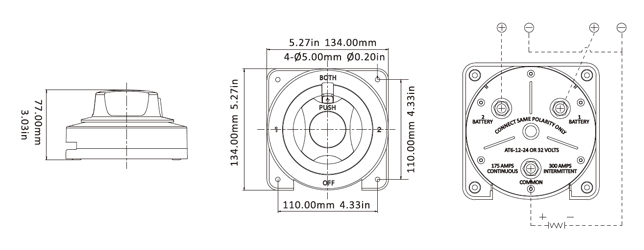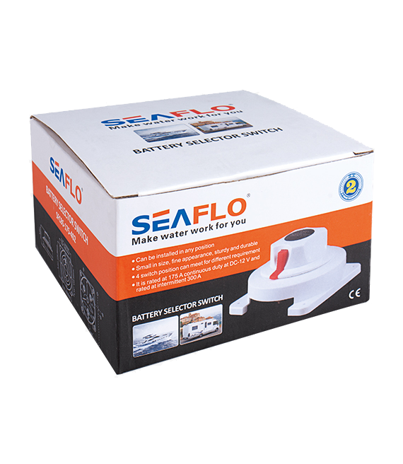 Przełącznik wyboru akumulatora SEAFLO pozwoli na użycie jednego akumulatora do rozruchu silnika i jednego akumulatora do pomocniczego wyposażenia elektrycznego. Baterie można umieścić równolegle, przełączając na (OBA) do użytku awaryjnego. Mały rozmiar, delikatny wygląd, solidny i trwały. Przełącznik wyboru akumulatora – Umożliwiają wybór między akumulatorami do rozruchu i ładowania lub równoległą pracę obu akumulatorów.